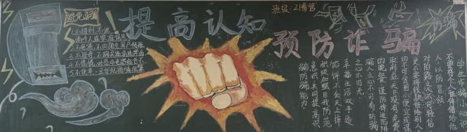 为增强公司员工的安全防范意识,提高对诈骗信息的辩别能力,认识各类诈骗手段,提醒同学们不要误入诈骗陷阱,切实保护好自身财产,beats365官网入口于11月22日至11月26日开展了“防诈骗,为安全”主题黑板报评比活动。