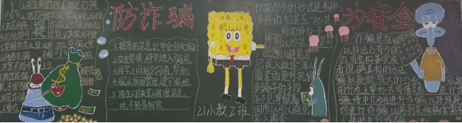 此次黑板报评比活动,旨在提高同学们对诈骗的认识。经过精心设计、绘画、书写,各班完成了内容丰富,图文并茂,创意新颖的黑板报。一幅幅精美的黑板报向同学们普及了防范校园电信诈骗知识,多角度展现了员工们对防诈骗意义的理解,同时也针对性地列举了多种防范措施。经院评审小组认真打分评选,21小教6班,21小教2班,21青管班板报内容紧扣主题,字迹工整,内容丰富,被评为此次黑板报优秀作品。