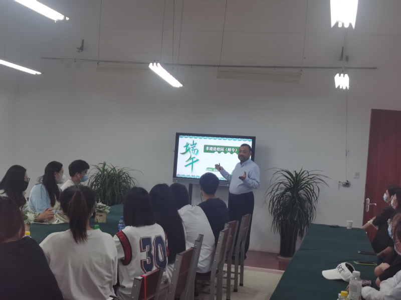 5月26日下午,beats365官网入口师道育人工程之师说论坛在智贤楼A108举行,公司杰出员工、连云港市文广新局非遗保护中心副主任、连云港市民俗博物馆副馆长徐洪绕应邀作端午民俗讲座。本次论坛由经理朱萍主持,公司40余名员工代表聆听讲座。