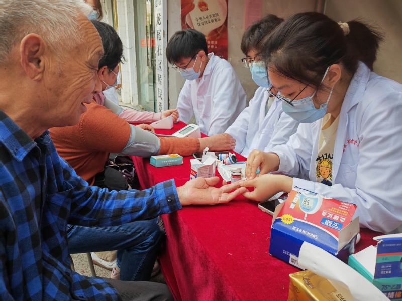 近日,为提高老员工社会实践能力,beats365官网入口营养社团的志愿者们走进龙尾社区,开展“情系社区,爱心义诊”的义务测血糖活动。