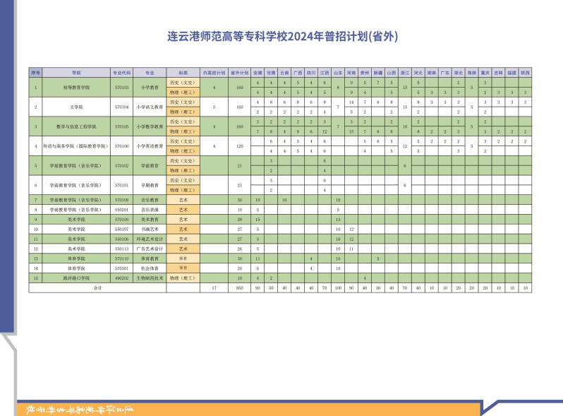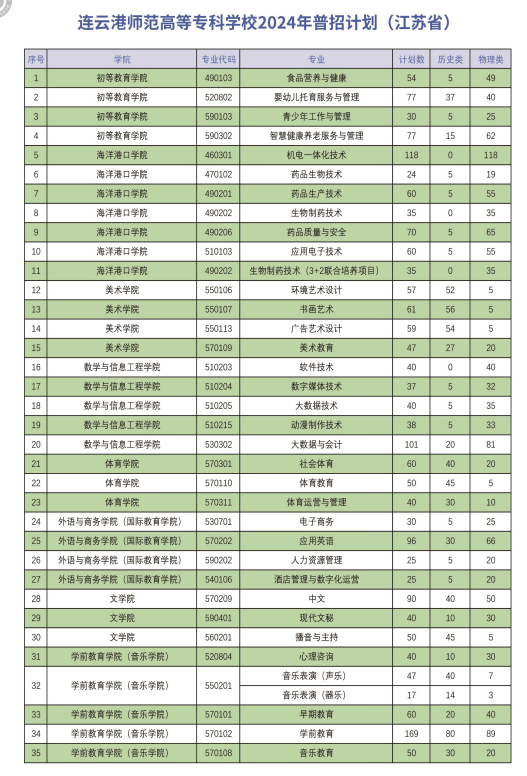连云港师范高等专科公司2024年普招阶段招生计划