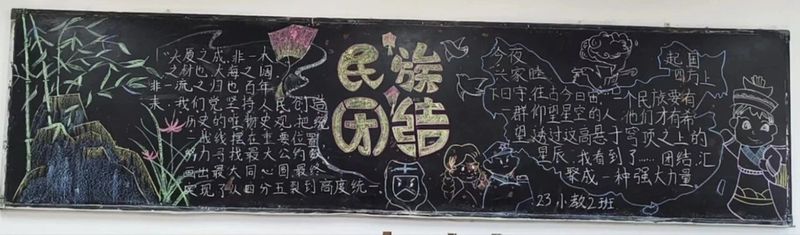 为增强全民族凝聚力和向心力,提高民族团结意识和民族自豪感,公司开展以画为媒,凝聚民族团结力量为主题的黑板报绘制活动。本次活动以团支部为单位,通过活动前期积极宣传,吸引众多同学参与,为板报设计建言献策。同学们以自己对民族团结的理解与向往,积极搜集资料,相互配合绘制出一幅幅主题鲜明,布局美观,书写工整的板报作品。各民族同学更深入地了解了民族团结进步的历史意义和精神内涵,明确了自身肩负的责任。活动结束后,由院分团委宣传部进行投票,23幼管2班获一等奖,23小教2 班获二等奖,23 小教1班获三等奖。