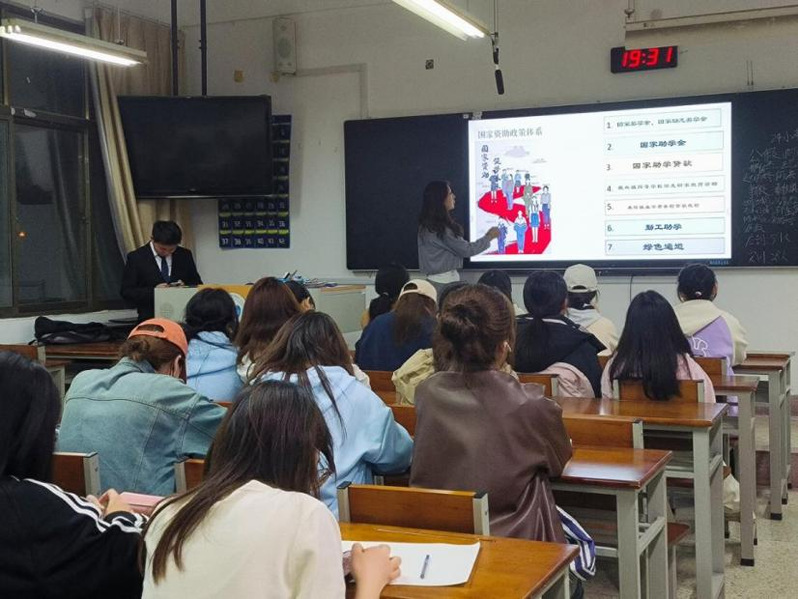 互动环节中,同学们积极提问,围绕助学贷款还款细则、勤工助学岗位申请等问题展开热烈讨论。为帮助同学们深入理解资助政策,活动还精心策划了资助政策知识问答环节。在轻松活跃的氛围里,同学们踊跃参与,进一步加深了对资助政策的全面理解。