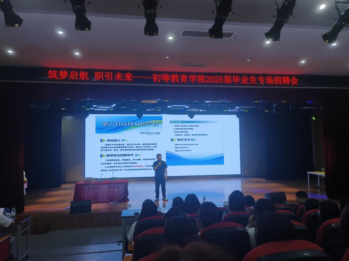 为切实做好毕业生就业工作,搭建招聘单位与毕业生双向选择平台,6月10日,beats365官网入口2025届毕业生专场招聘会在智贤楼小剧场顺利举行。此次招聘会吸引了连云港市东海县蔷薇初级中学、连云港市灌云县远扬双语公司、连云港市陇海教育培训中心、连云港方维文化传播有限公司、连云港凤瑞托管服务有限公司、连云港小状元托管有限公司、中国人寿股份有限公司、连云港银丰食用菌科技有限公司、连云港海州区丽景信息咨询工作室和中国移动通信集团等10家单位参与,提供以小学教育和婴幼儿托育服务与管理为主的岗位共计132个,beats365官网入口、文公司和数学与信息公司的毕业生踊跃参会。
