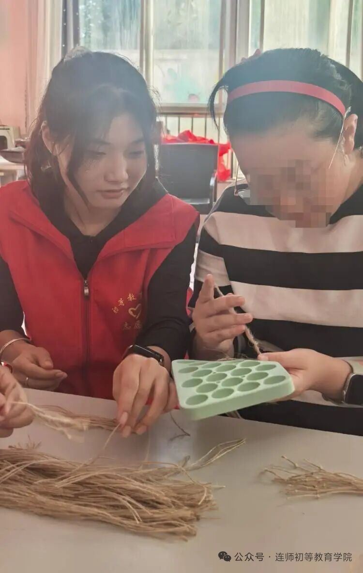 在活动绘画环节,志愿者全程陪伴在“糖宝”身旁,手把手引导他们挑选画笔、调配色彩,一起绘制出形象各异的小鱼、海龟、螃蟹等海洋生物作品。“糖宝”们用稚嫩的笔触为画作涂上斑斓色彩,不仅在创作过程中认识了各类基础颜色,更通过指尖的操作锻炼了手指协调能力与精细动作技能。手工香皂制作环节同样充满趣味。志愿者与现场老师分工协作,有的负责皂粒融化,将皂液倒入卡通造型模具做好准备工作;有的手把手引导糖宝学习绳子打结技巧,并在模具上精准钻孔以固定绳结;还有的志愿者手持工具,细致修整成型皂球边缘的毛边,确保作品完整美观。伴随着轻快的歌声,“糖宝”与志愿者们共同制作出了精美可爱的手工香皂,现场洋溢着轻松愉悦的氛围。
